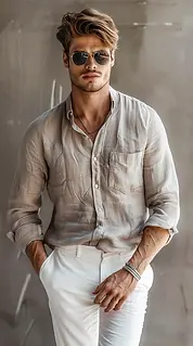 For dressier occasions, pair a linen shirt with lightweight linen trousers in a matching or complementary color.